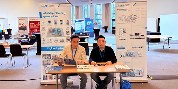 Tijdens de conferentie concentreerde NIASI zich als enige vertegenwoordiger van de Chinese kunststofmachine-industrie op het delen van haar praktische ervaring met volledige ketendiensten voor thermovormtoepassingen, waaronder het lossen, opslaan, ontvochtigen en drogen van grondstoffen, doseren en doseren aan de voorkant, evenals materiaaltransport en automatisch verpakken aan de achterkant. Het demonstreerde volledig de kernpositionering van NIASI als ontwerper van geautomatiseerde, gerationaliseerde en milieuvriendelijke processtromen, in plaats van als een enkele leverancier van apparatuur.